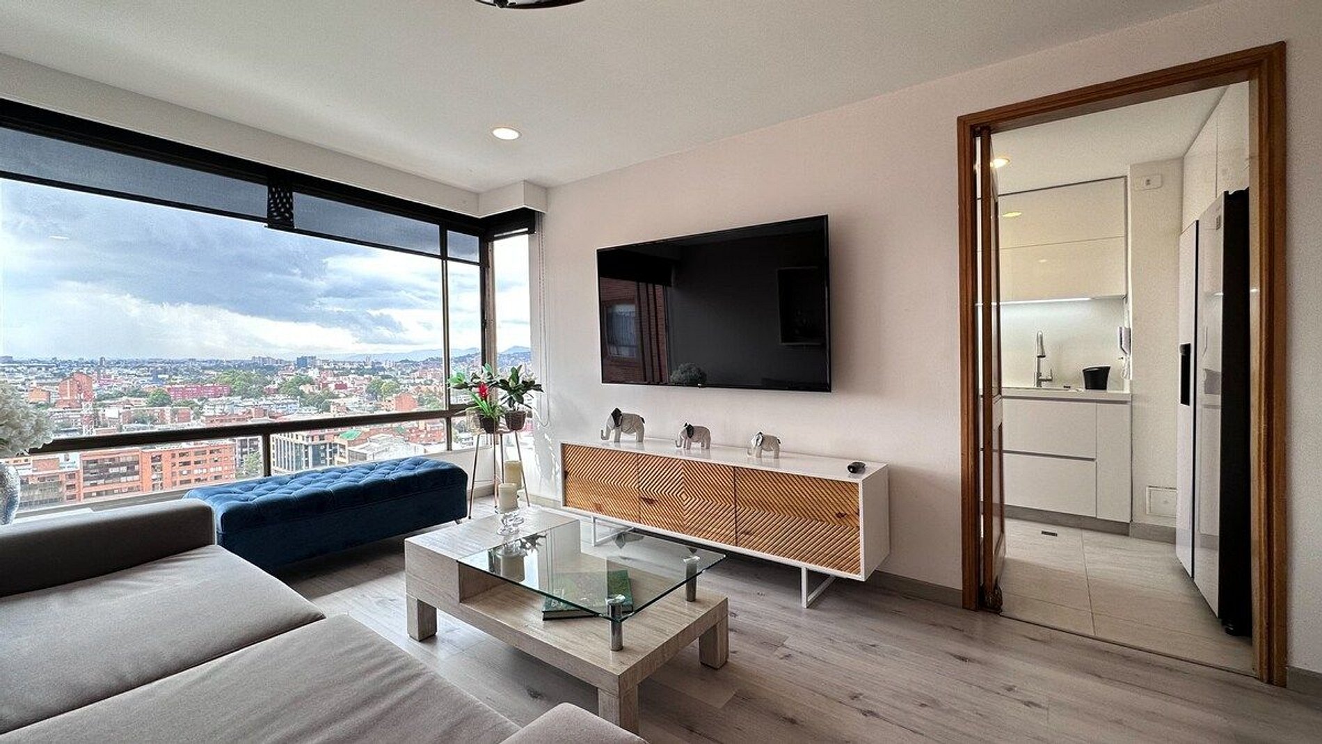 This luxury apartment is located in the best area of Bogotá. A few minutes away you will find Zona T or Zona Rosa, a recognized area in the city for its variety of restaurants and bars, where you will also be able to visit the best shopping centers in the country: El Retiro, Centro Comercial Andino, and Atlantis.