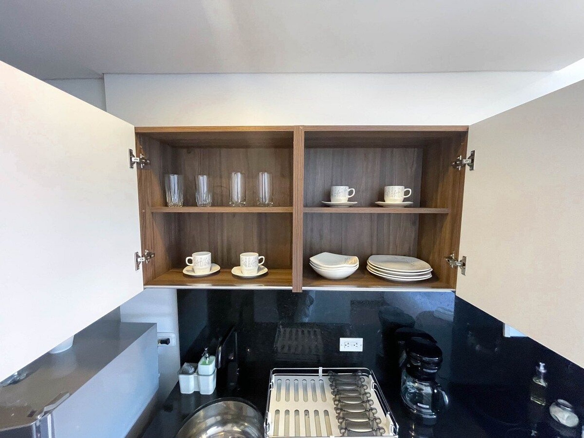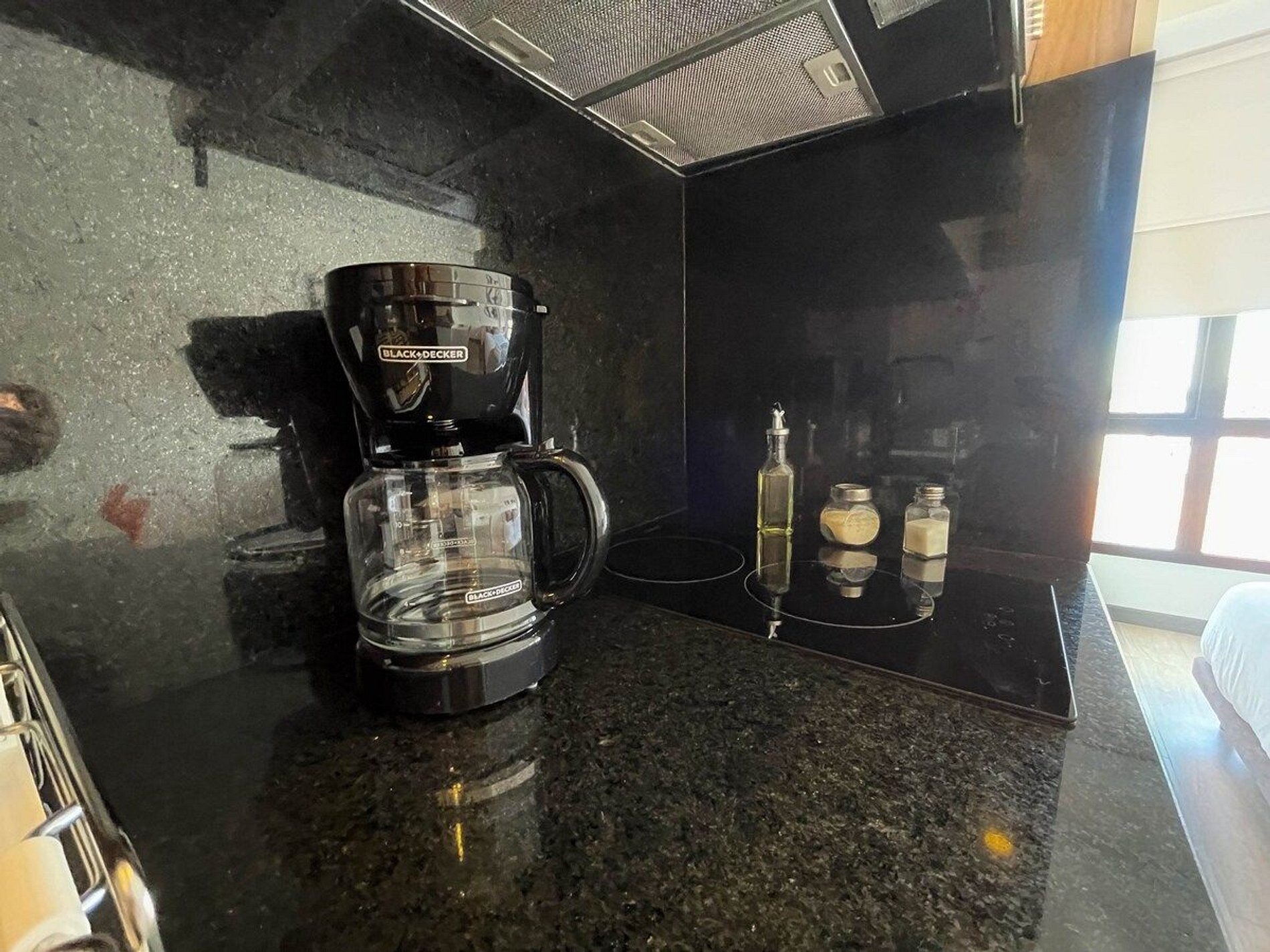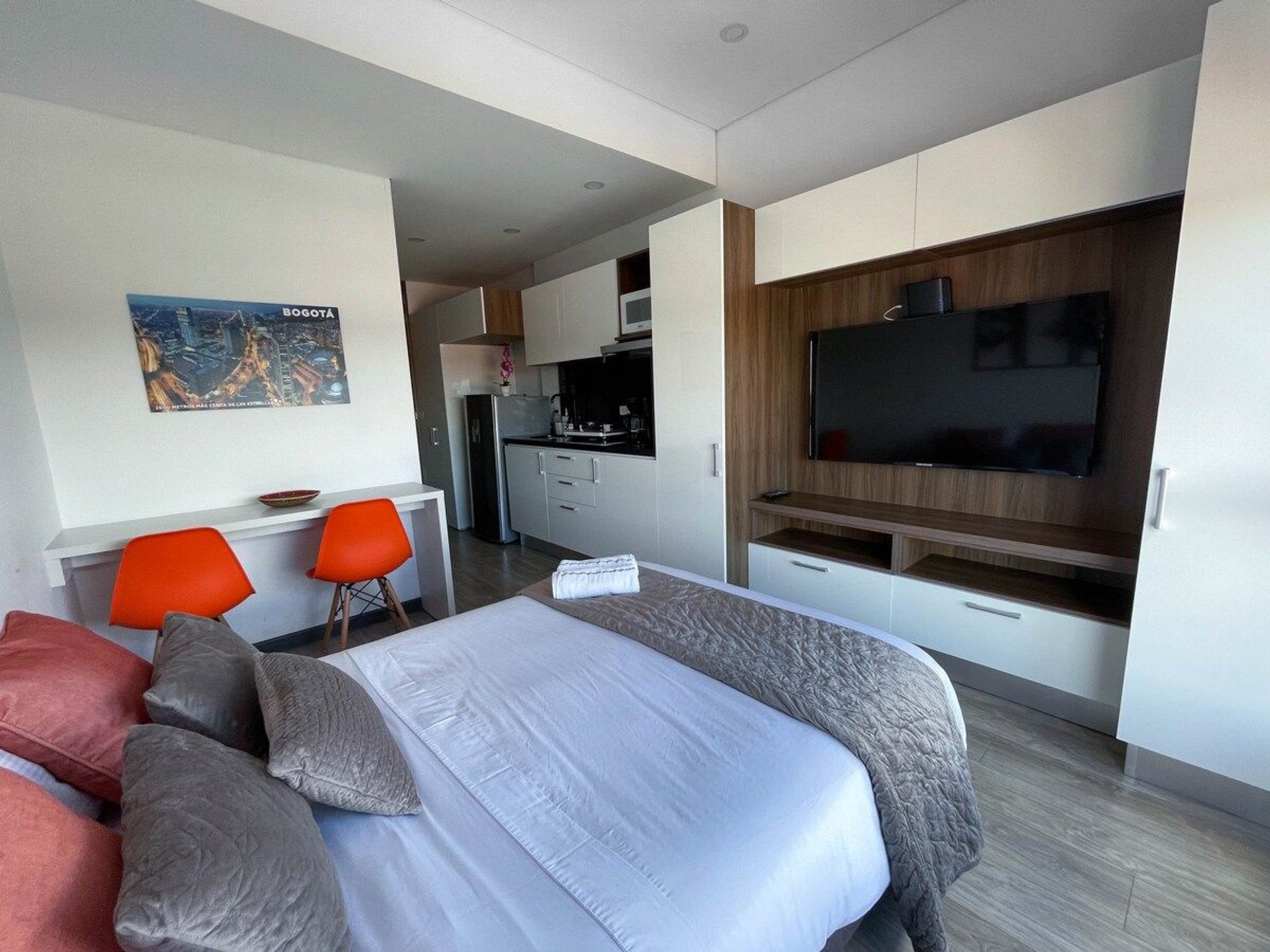 El apartaestudio es muy completo. Cuenta con cocina completamente dotada para cocinar y almacenar alimentos. La cama tiene un colchón doble muy cómodo y el Smart TV cuenta con acceso a todas las películas y series de Netflix. El apartaestudio cuenta con un escritorio con sillas para trabajar y para cenar. El baño también es muy completo y moderno.