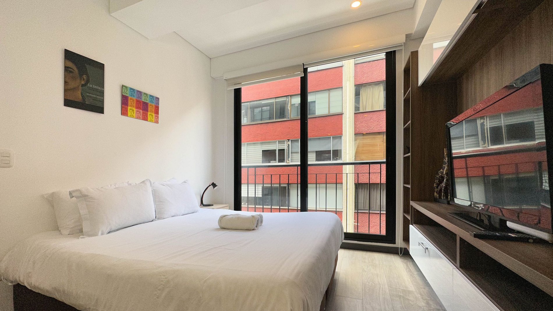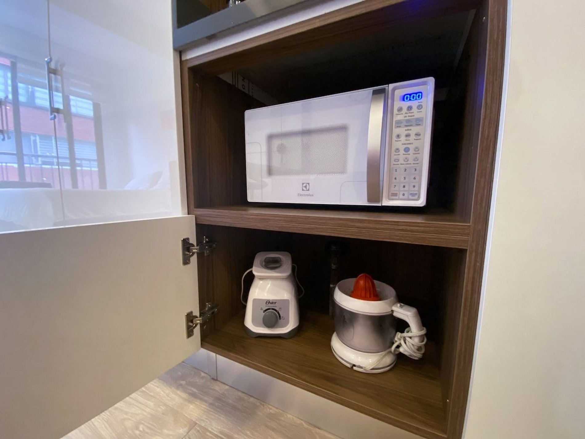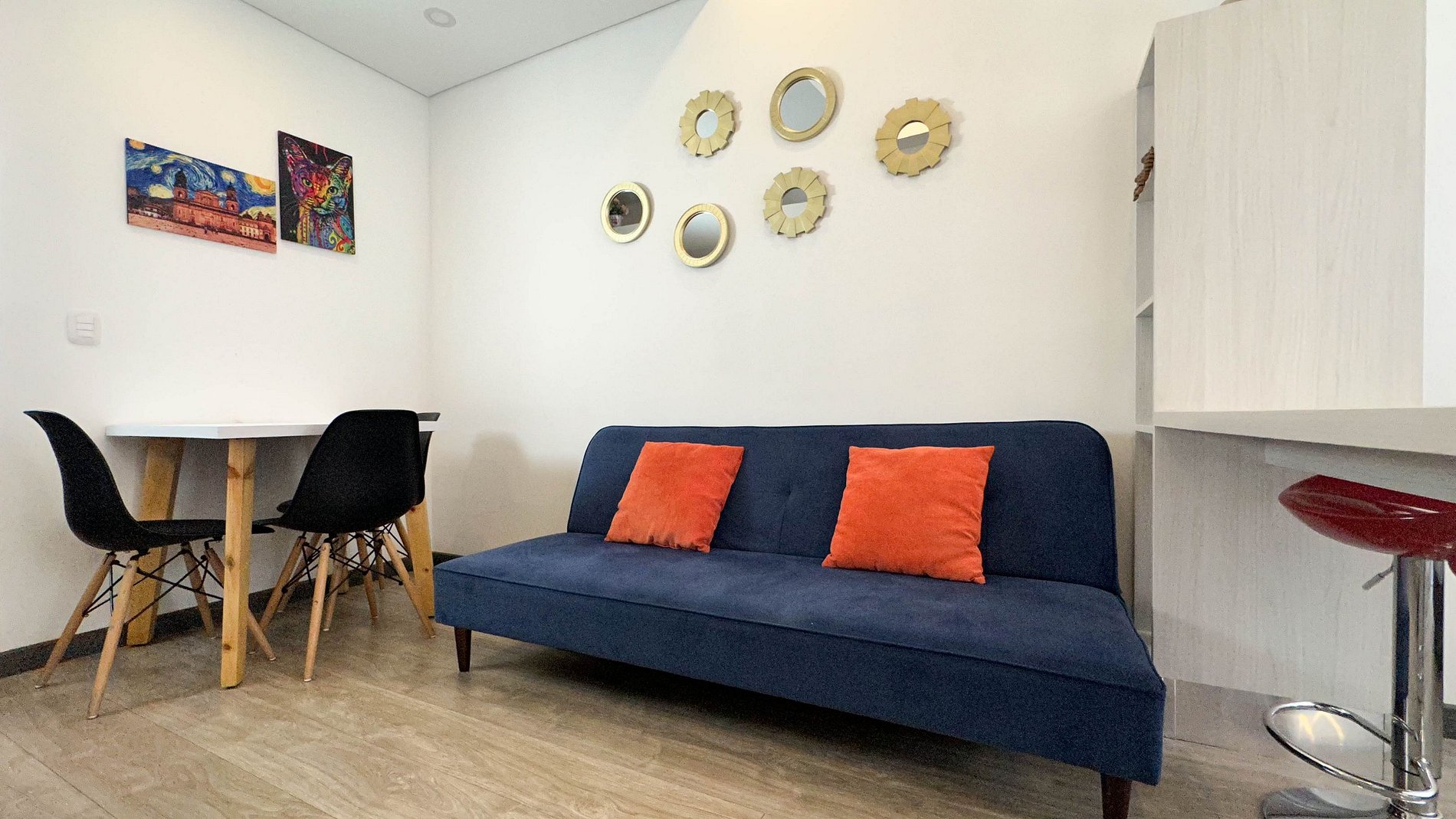 Este increible apartaestudio queda ubicado sobre la Avenida Caracas, una vía principal con transporte público (transmilenio), una vista privilegiada al occidente de Bogotá y con cercanía al Centro Internacional, universidades, restaurantes, el Parque Nacional, museos, y otros tantos sitios turisticos o de interés para cualquiera que quiera tener cerca la vibra de la ciudad. El apto cuenta con cama doble, cocina integral, lavadora, baño y todos los utensilios necesarios para cocinar.