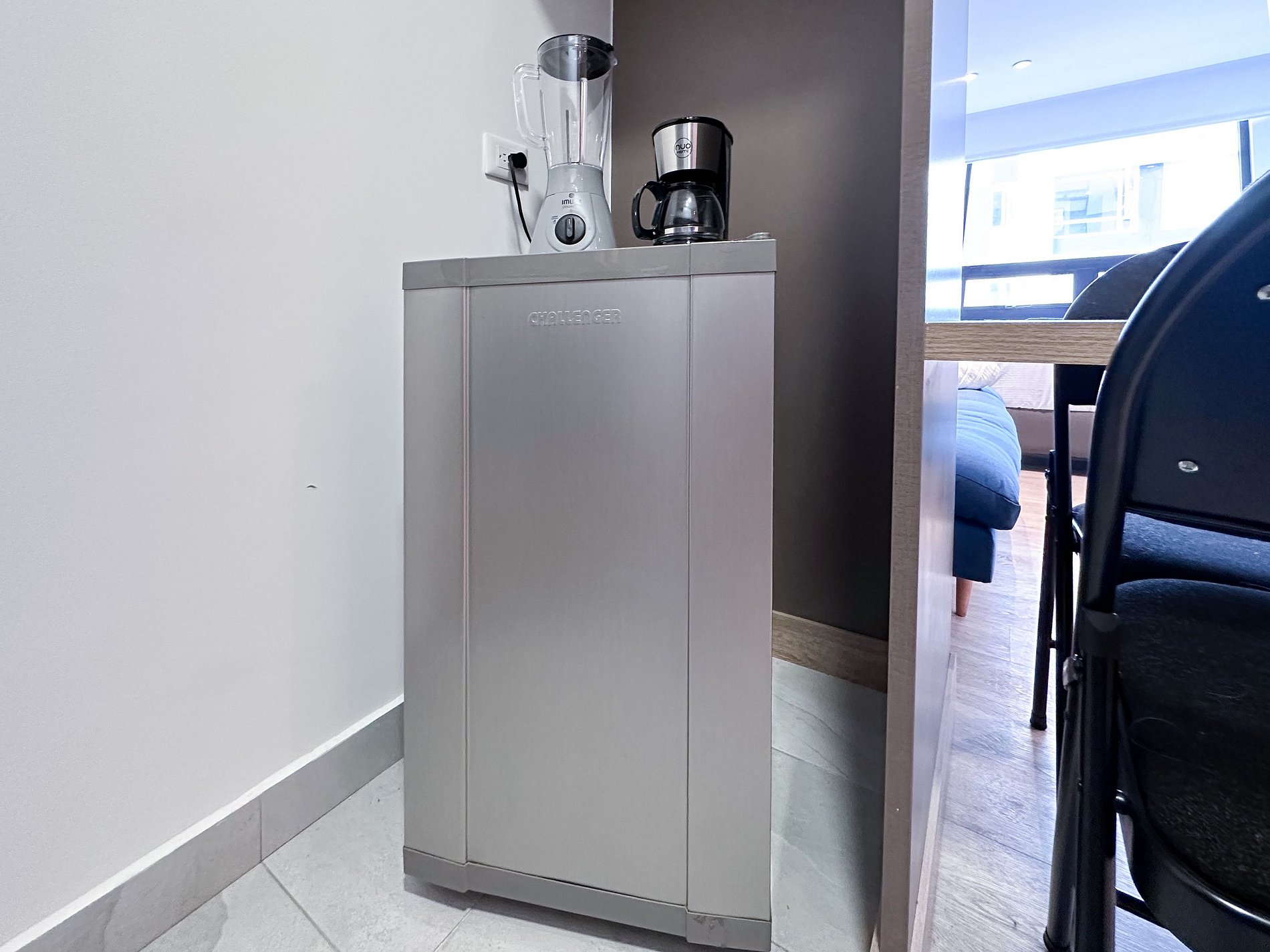 El apartaestudio es totalmente equipado. Ofrece una cocina completa para preparar y almacenar alimentos. La cama cuenta con un cómodo colchón queen y el televisor tiene acceso a todas las películas y series de Netflix. Solicita el usuario y la clave para acceder. Además, cuenta con un escritorio y una silla ergonómica para trabajar, y un área de comedor con un mostrador y sillas tipo puff. Sala con sofa cama y un baño moderno.